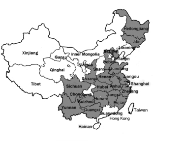 About 130 college students went to 1,564 villages – by train, bus, bicycle, boat, and often on foot – in 17 major agricultural provinces across China to collect this valuable first-hand information on farmers’ land rights. The 17 provinces included in the survey together contain an estimated 83% of China’s rural population (see the greyed provinces below).